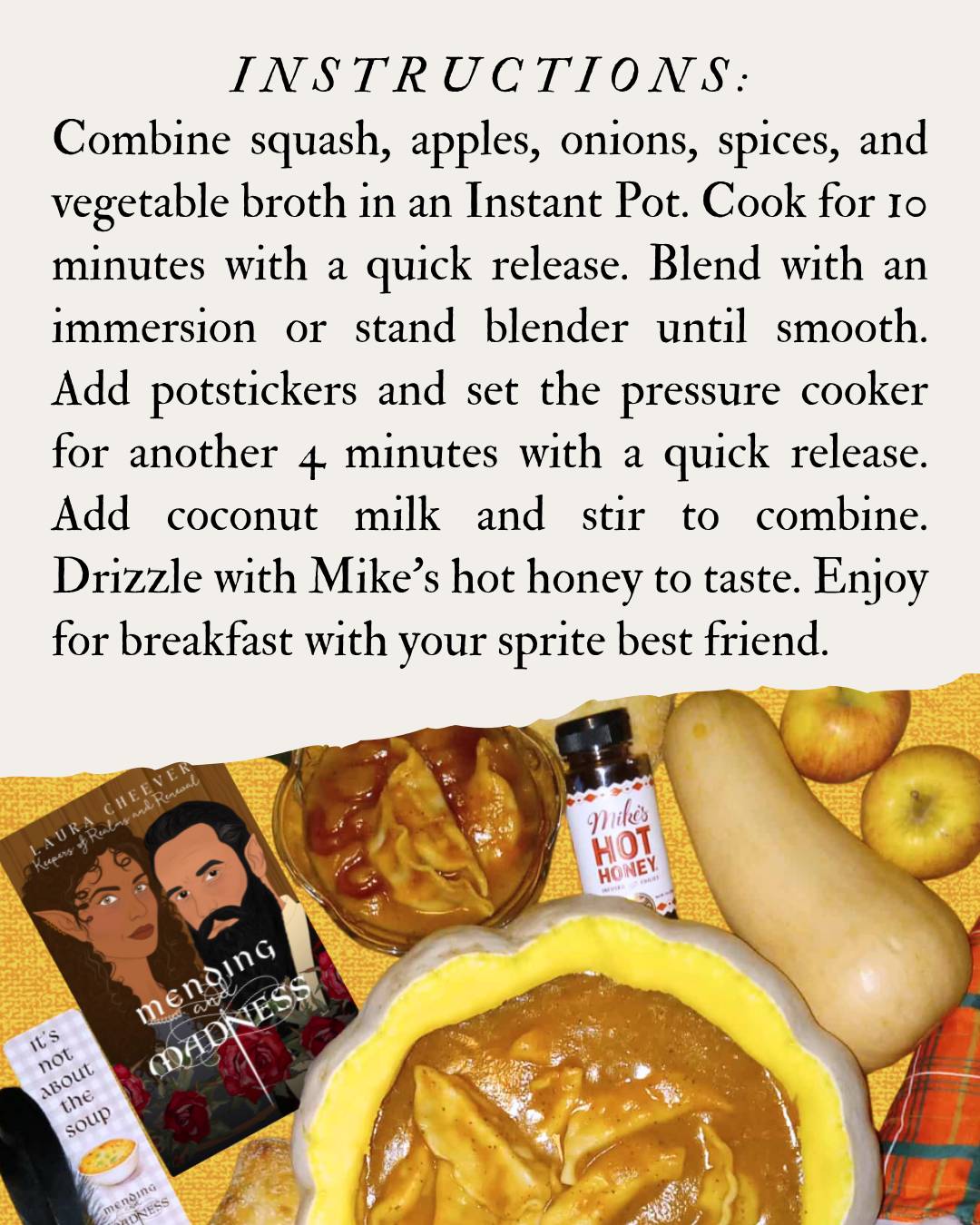 Hello, dear friend! Mending and Madness author copies have arrived! And they are absolutely gorgeous. (Am I allowed to say that? It feels weird, but they're legitimately adorable and so super cozy.) If you already preordered a signed paperback or hardcover, you can expect your book to ship on Saturday, November 22nd. All preorders — including ebooks — will qualify for goodies through November 27th. Most of this stack has already been claimed (there's only one paperback left without a home), so orders placed now will be shipped when I get more books in stock. The Fralsningdor Chronicles has also been restocked on my website. If you're one of the readers who's been patiently waiting to get a signed hardcover of Lost King of the Pattern, now is your chance! Le'eah's Butternut and Black Pepper Soup Welcome to your new favorite food blog! Nah, just kidding. But I do have a recipe for you inspired by chapter three of Mending and Madness. Break out your Instant Pot, dear friend. It's soup time! And now, for the moment we've all been waiting for... The Webs We Weave If you were on Christian indie author Instagram over the weekend, you probably saw the much-deserved buzz over The Webs We Weave cover reveal! If not, it is my utmost honor to share it with you: This cover by Emilie Haney is absolutely gorgeous! The rich colors are giving me life, and the Easter eggs hidden in the filigree make you wanna set off on a cross-kingdom adventure to restore the throne and... accidentally get married??? This YA non-magical fantasy novel by Cassandra Grace releases February 26, 2026 and is set to be the BEST book of the year! Mark my words. Signed preorders are open now! If you have a U.S. mailing address, you can preorder here. Preorders will open elsewhere next month. I wanted treason. Piracy. All I got was a wedding. As the illegitimate daughter of a pirate, Evangeline’s greatest aspiration is to be left alone. Driven from her hometown and her livelihood, she finds herself caught up in a world of schemes and politics. Prince Alastair Cathmoore lost the throne and his family just weeks ago. Though the kingdom believes all the Cathmoores are dead, he knows his parents are being held captive by a traitorous king. Not knowing who he can trust, it’s up to him and his tutor, Roland, to rescue them and restore the throne—while pretending to be little more than commoners. Such different people should never cross paths, let alone merge them. But after getting captured by pirates, Evangeline’s and Alastair’s hasty plan to save their lives unites them in matrimony. Or does it? Surely a wedding officiated by pirates isn’t legally binding… With threats around every corner, Evangeline and Alastair find their lives have been woven together by something, and the fate of a kingdom is tangled in the web.